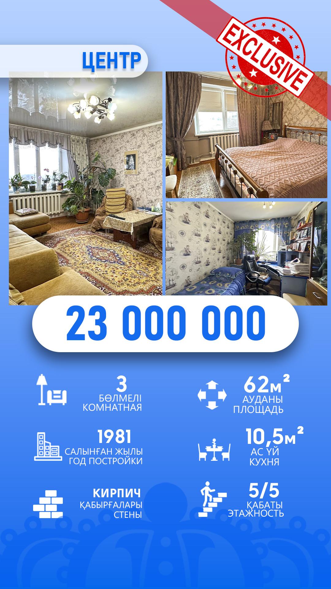 3-комнантная, 5/5 этаж, 62.0м², Гаухар Ана