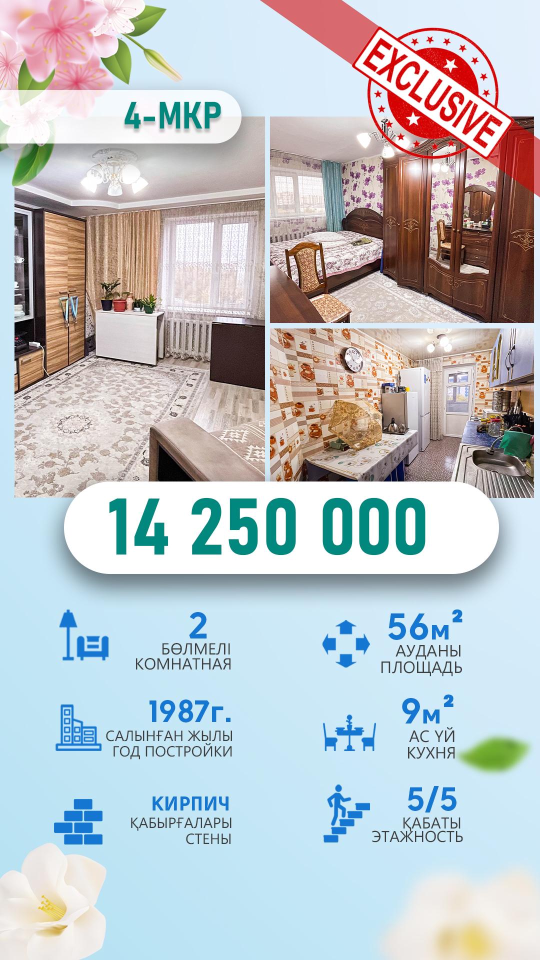 2-комнантная, 5/5 этаж, 55.2м², 4 мкр