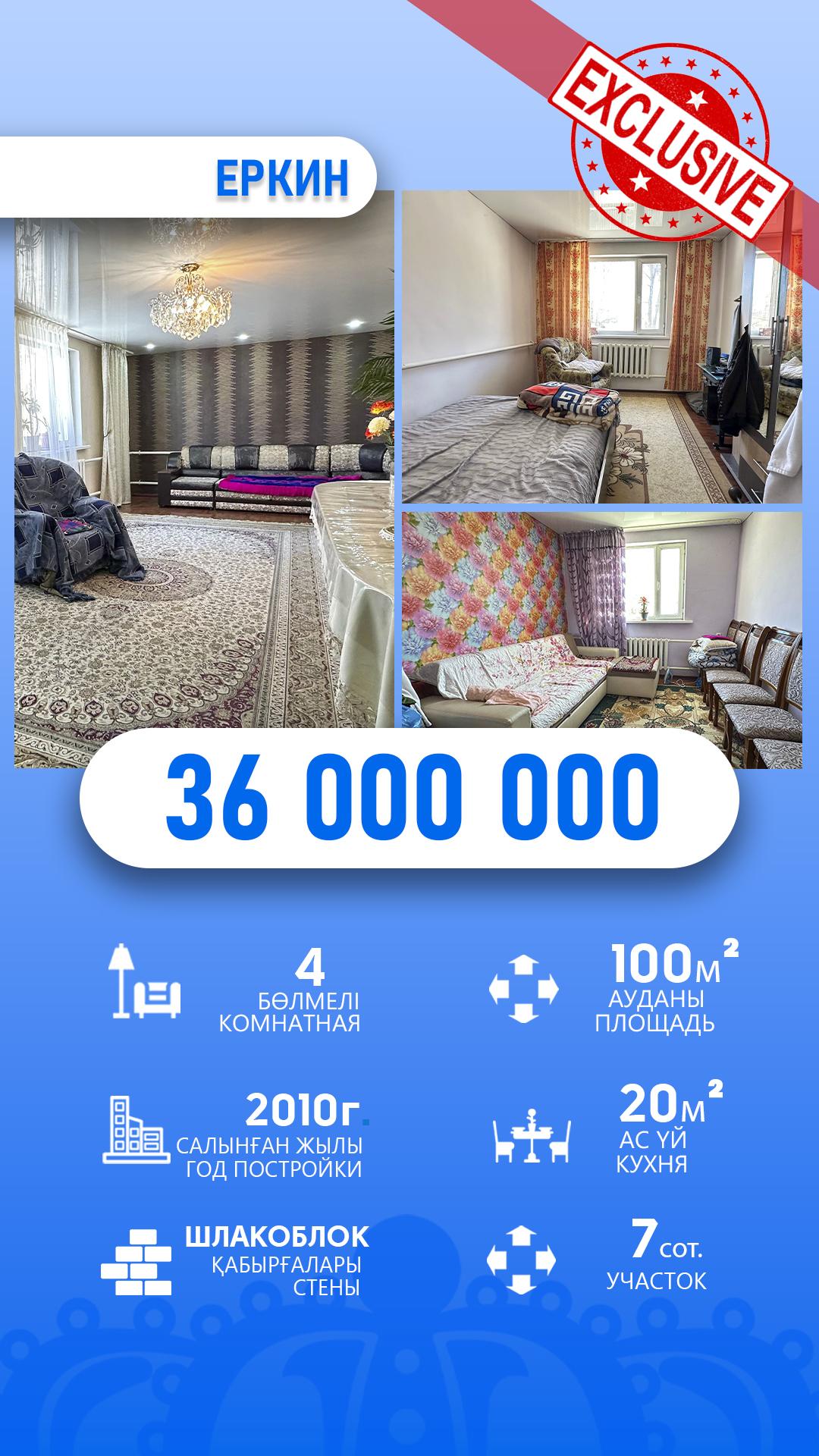 4-комнантный, 100.0м², 7.0, Ашыбулак