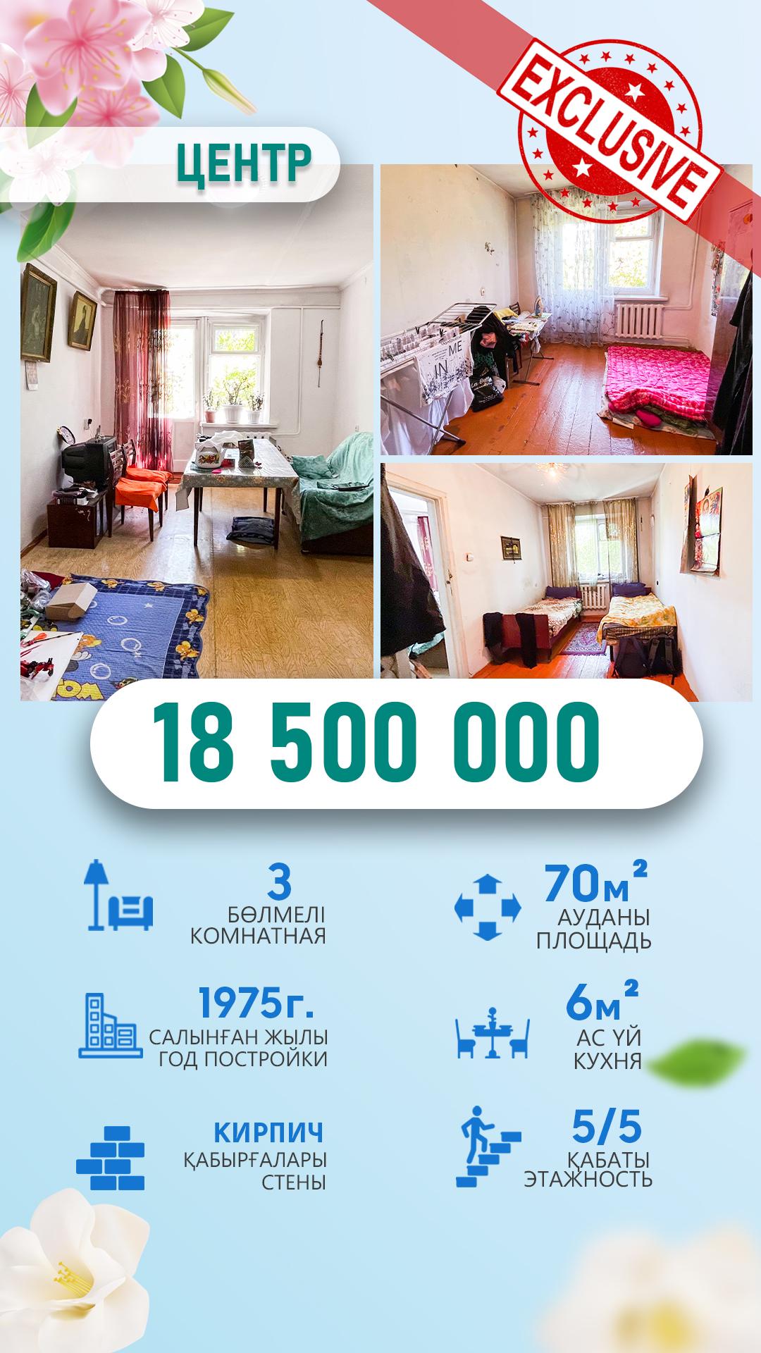 3-комнантная, 4/4 этаж, 70.0м², Биржан Сал