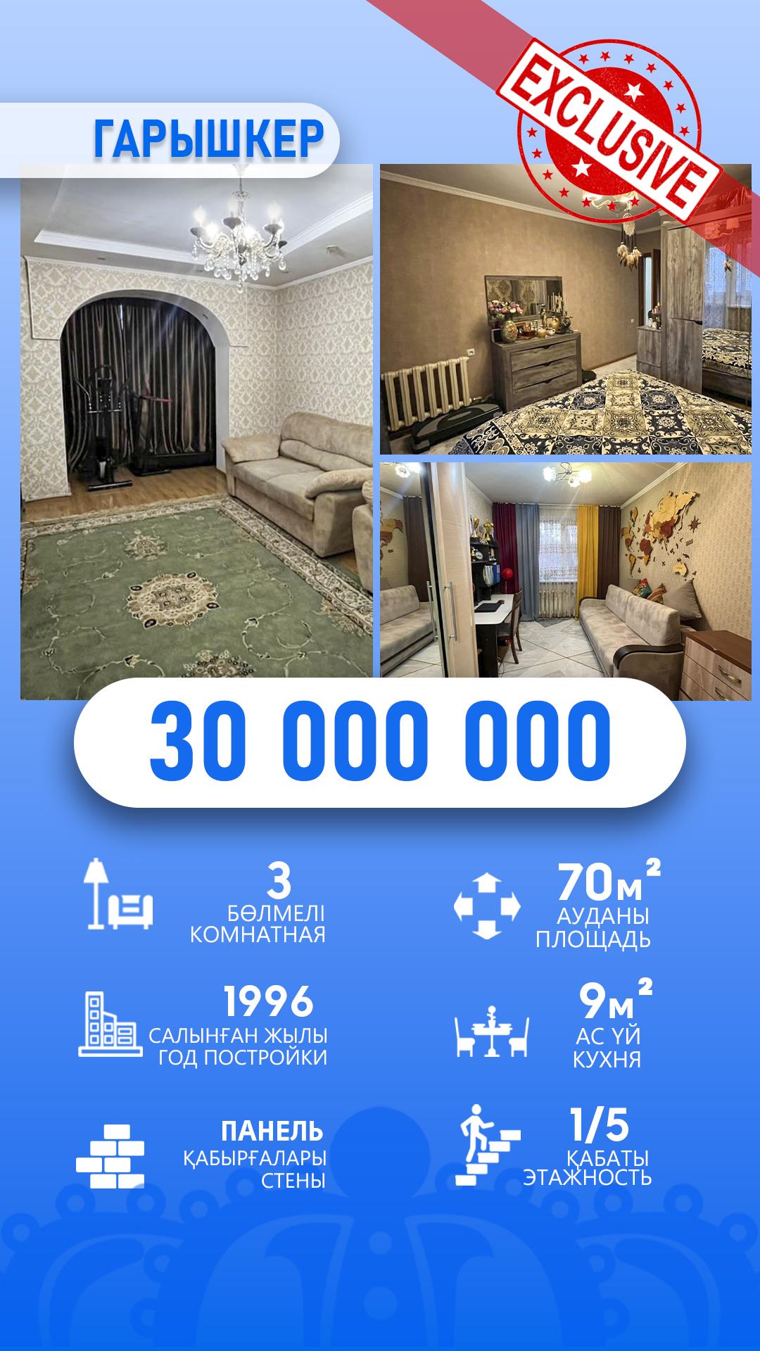 3-комнантная, 1/5 этаж, 71.0м², Гарышкер