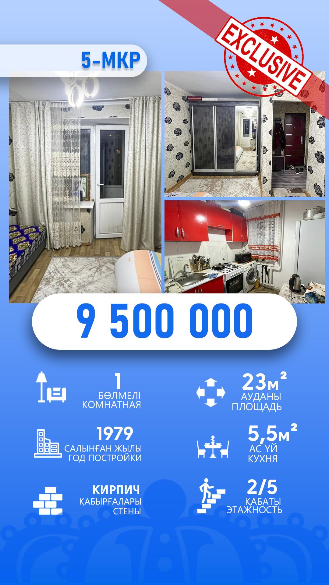 1-комнантная, 2/5 этаж, 23.0м², 5 мкр