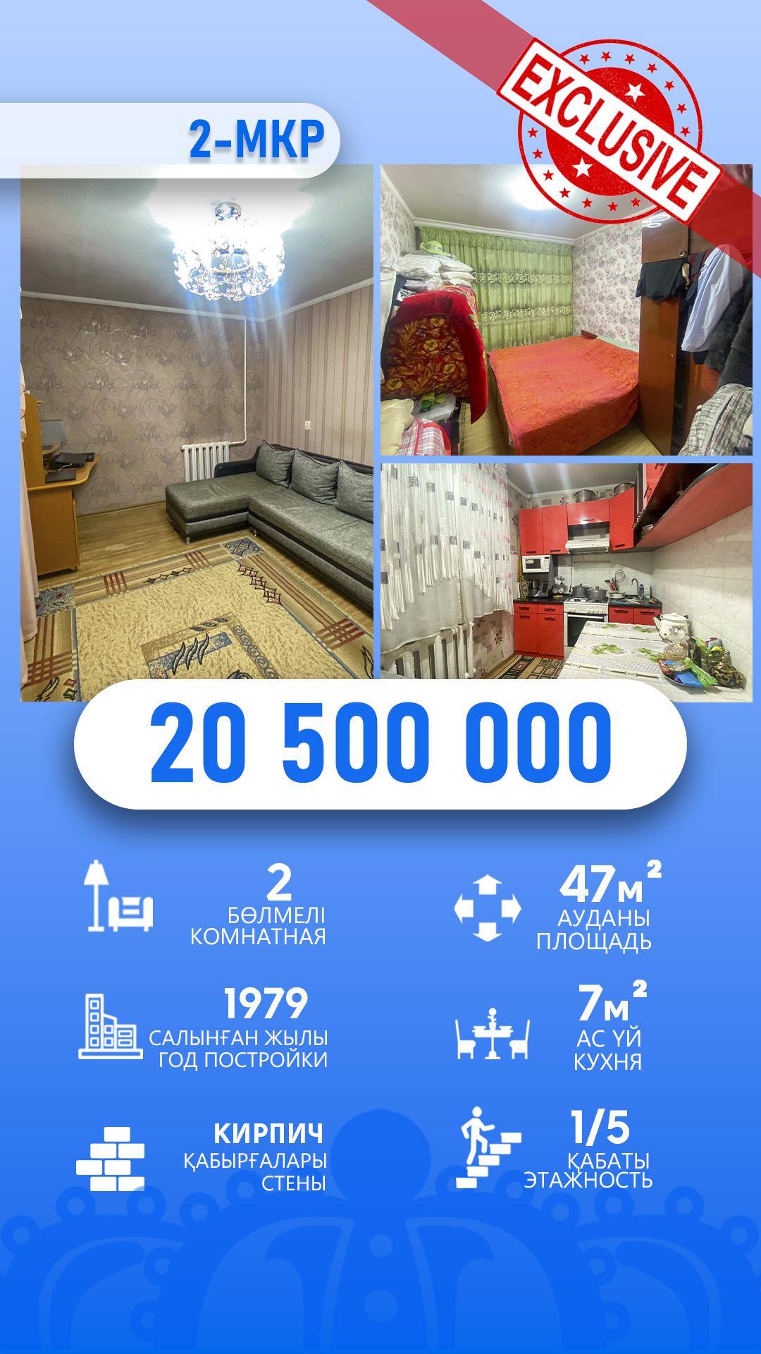 2-комнантная, 1/5 этаж, 47.0м², мкр Самал