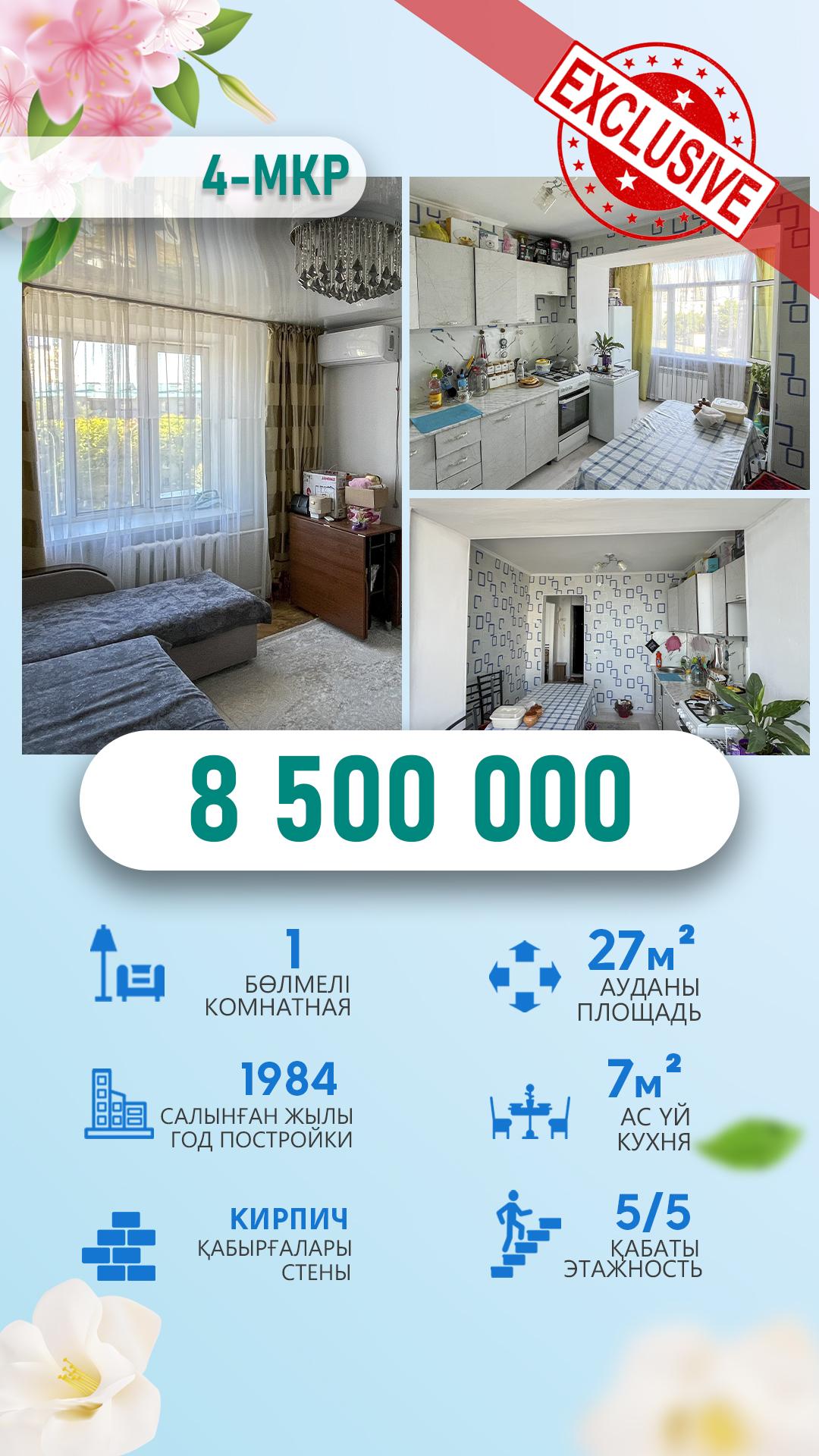 1-комнантная, 5/5 этаж, 30.0м², 4 мкр